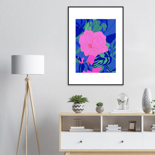 Hot Pink Hibiscus Flower™ Premium Wooden Framed Matte Wall Art Print