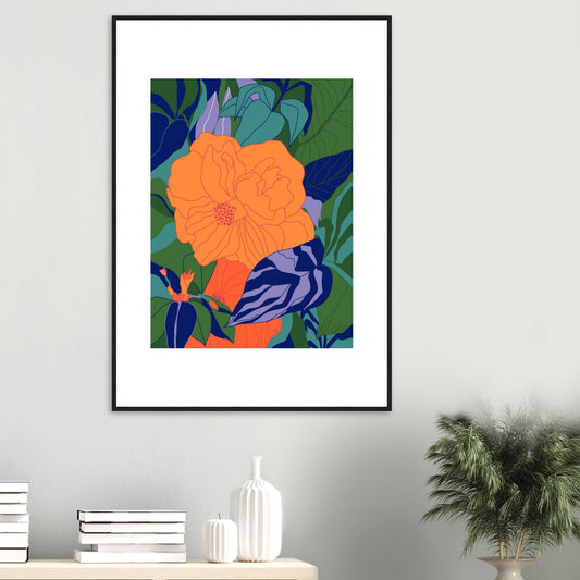 Blood Orange Hibiscus Flower™ Premium Wooden Framed Matte Poster