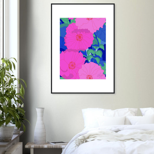 Hot Pink Flowers™ Matte Paper Wooden Framed Poster